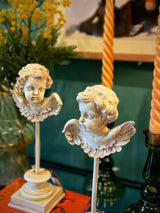 An original decorative figurine featuring the bust of a classic Italian-style angel with wings, on a square base, finished in resin with a weathered patina.