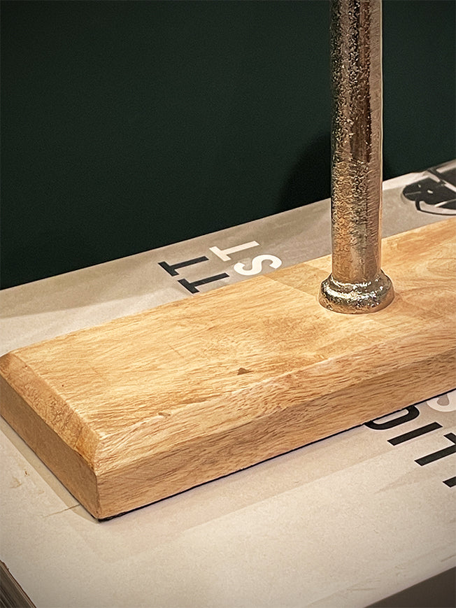 Approximate measurements: 23 x 8 x H 35 cm | Made of aluminum iron | Wooden base