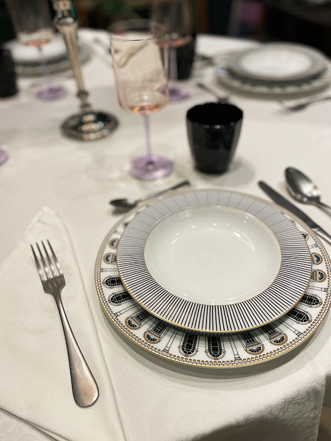 From the 'Palazzo' tableware collection for an elegant and sophisticated table, perfect for gifting and also mixing with other tableware. An original design that complements the deep plate, the dessert plate as well as coffee sets and trays.