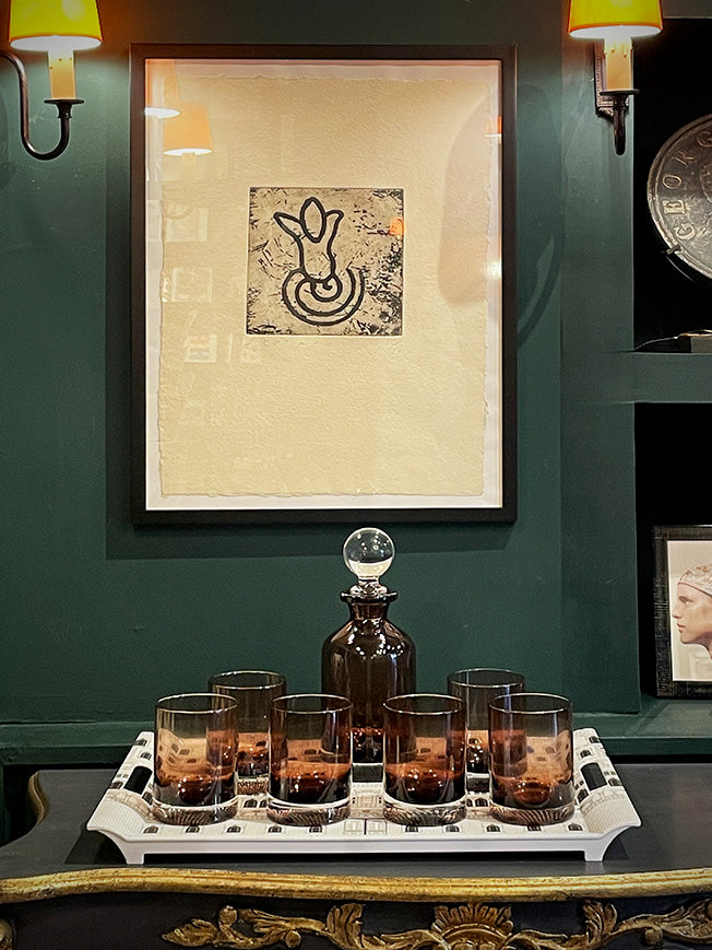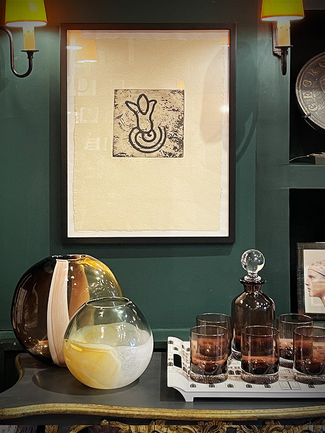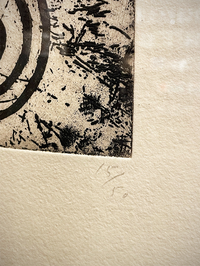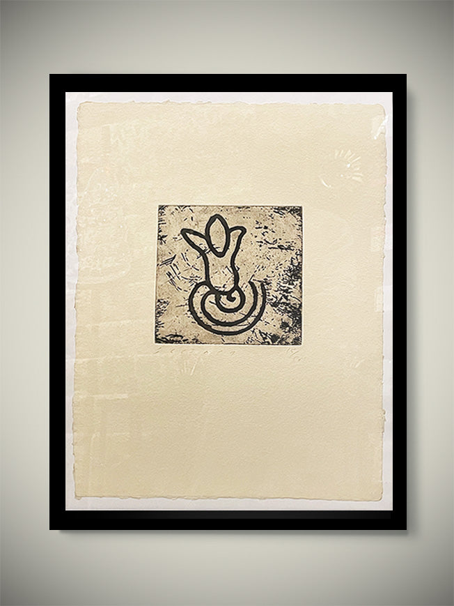 A numbered abstract engraving, on handmade paper edited by Tristán Barbará, from 1987.