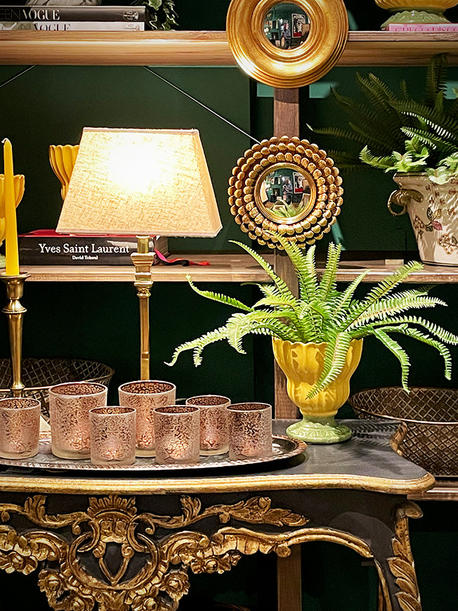 Approximate measurements: 20 x 20 x 3 cm | Resin and Glass | Golden Patina | Clean with a soft cloth, without chemicals