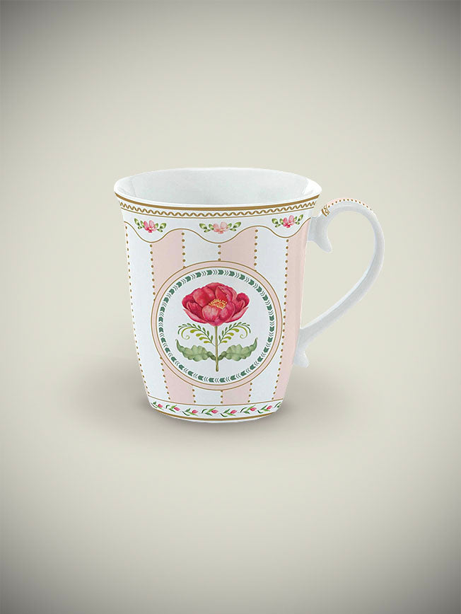 A magnificent porcelain mug, featuring a classic and elegant striped design with a flower as its central motif. The 275 ml 'Flowery' mug is ideal for tea, coffee, and hot chocolate, and comes in a box that makes it ideal for gifting alongside other pieces from this collection.