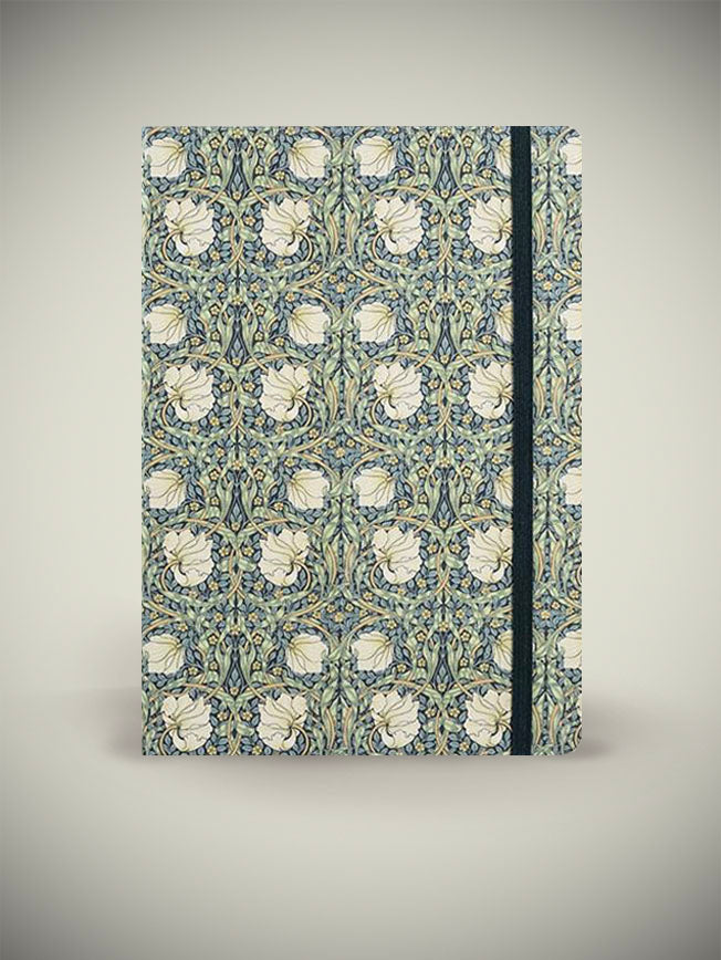A notebook with elastic closure, ideal for gifting to art lovers and those who love the Arts & Crafts movement.