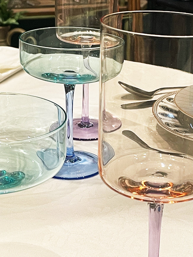 The 'Rainbow' glasses are classic with a modern touch, timeless pieces that will add style to your table, combined with other glasses of the same collection or mixed with different glasses and glasses.