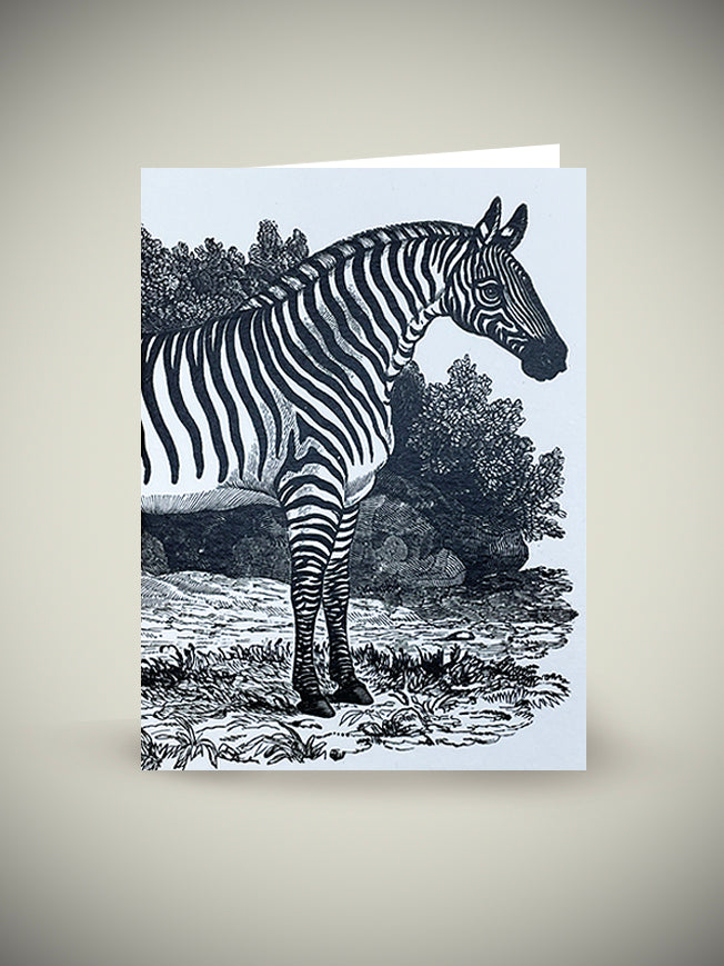 A very exquisite card featuring the Zebra illustration from the General History of Quadrupeds from 1822, by Thomas Bewick (1753-1828).