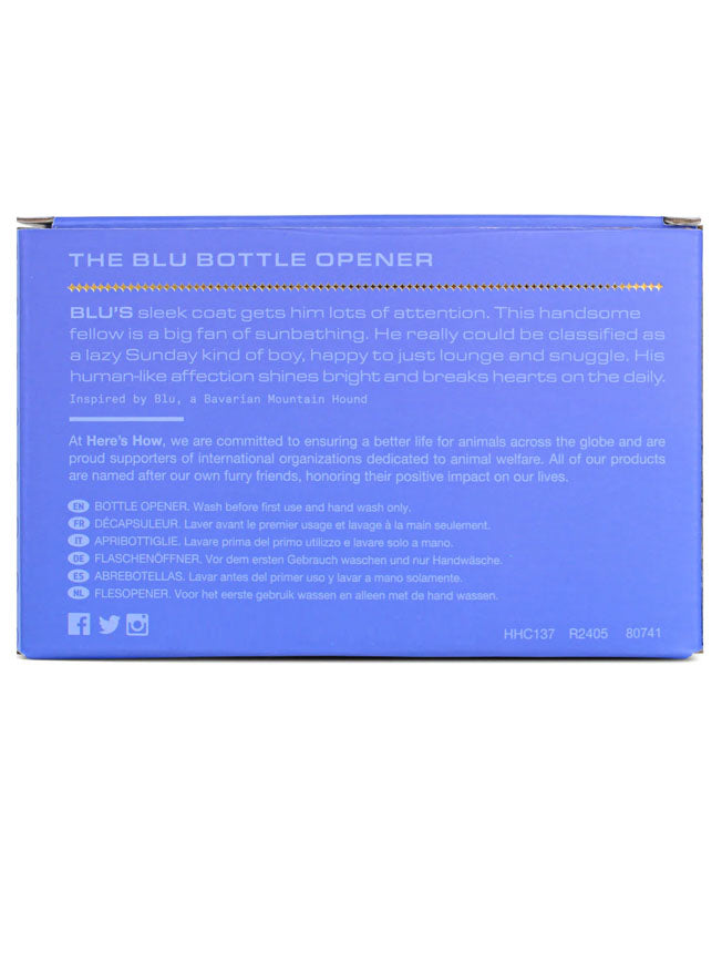 El abridor 'The Blu Seal' es parte de la colección HeresHowCo que ayuda a organizaciones internacionales dedicadas al bienestar de los animales y da nombre a sus productos con nombres reales de las mascotas de sus diseñadores, en este caso 'Blu'.