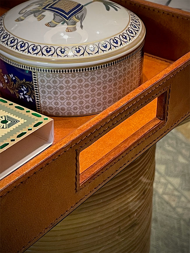 La bandeja 'Valet' es una pieza de cuero clásica y elegante que encajará perfectamente en cualquier interior, ideal para una mesa de centro, un mueble bar y perfecta para regalar.