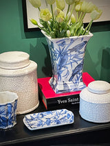 La bandejita 'Bleu Paradise' es una pieza clásica y elegante que encajará perfectamente en cualquier interior, sola o acompañada de otras piezas de la misma colección, como los tibores, jarrones y cajitas decorativas.