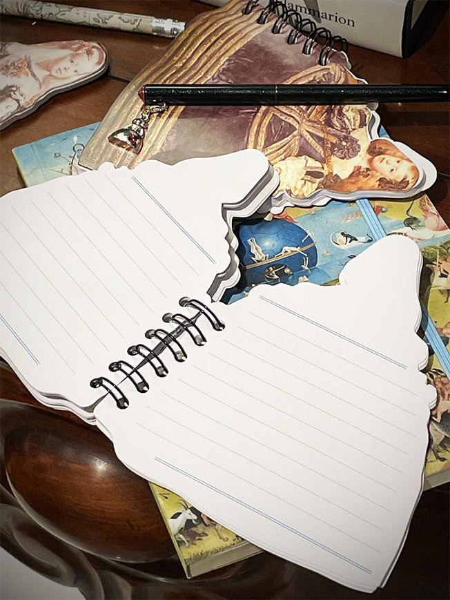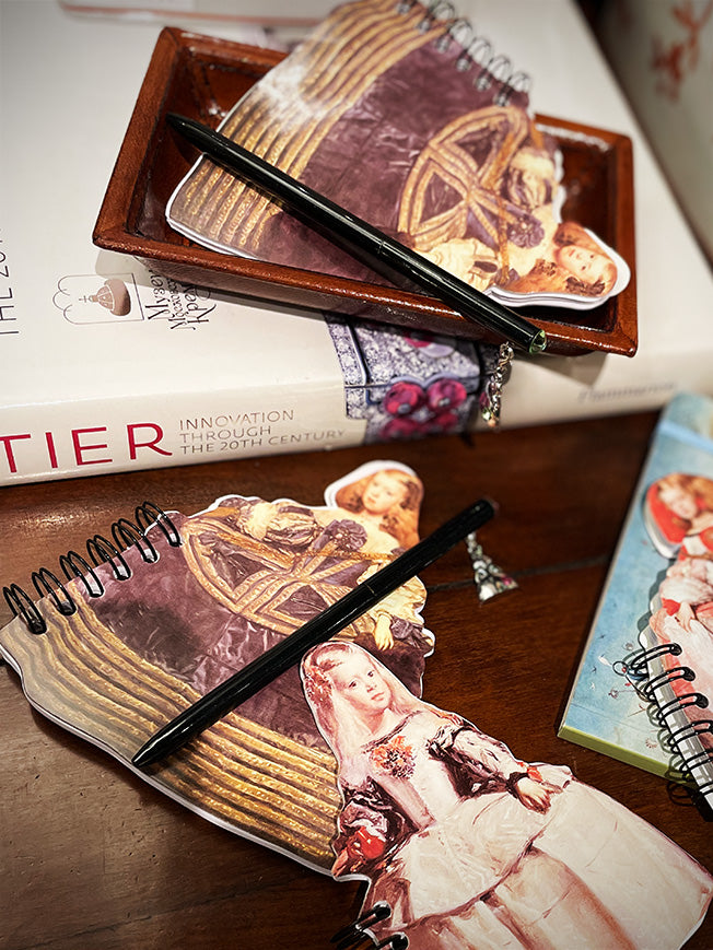 Un pequeño cuaderno en un diseño original y muy artístico con la silueta de la Infanta Margarita del conocido cuadro de Velázquez.