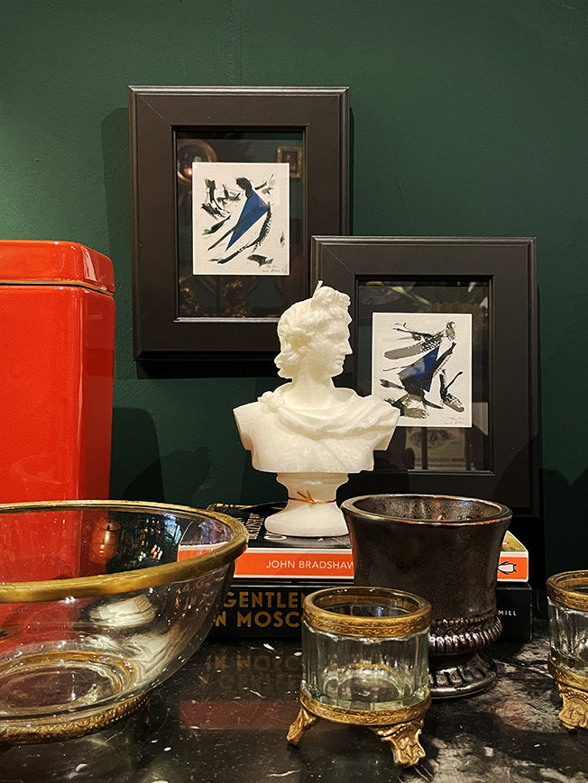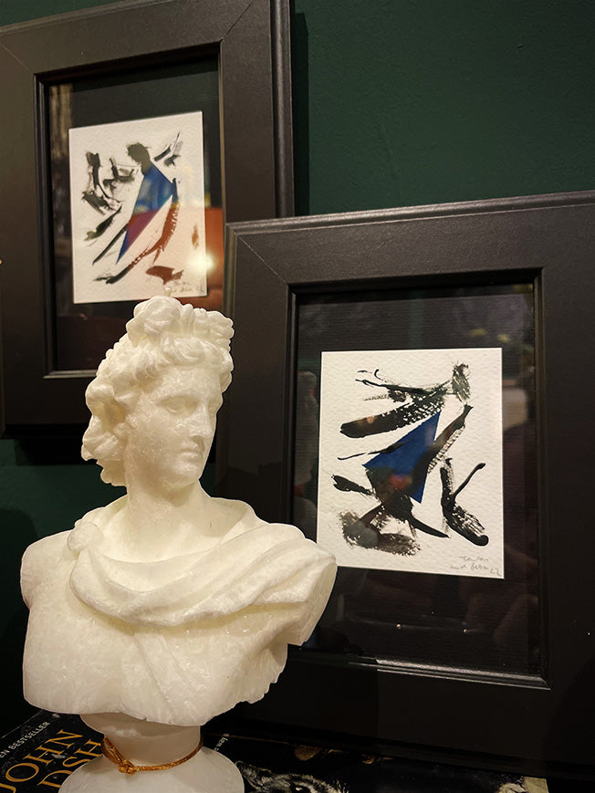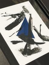 Los dibujos 'Blue & Black Abstraction' están disponibles individualmente, son piezas contemporáneas de medidas pequeñas, perfectas para añadir el toque final a cualquier interior, solas o acompañadas de otros cuadros y piezas decorativas.