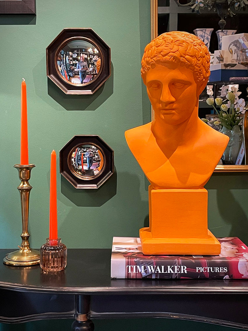 Este espejo decorativo es el pequeño de la colección 'Gustave' con lente de efecto 'ojo de buey', una pieza elegante que añadirá estilo y calidez a tu decoración, solo o mezclado con otros espejos y obras de arte.