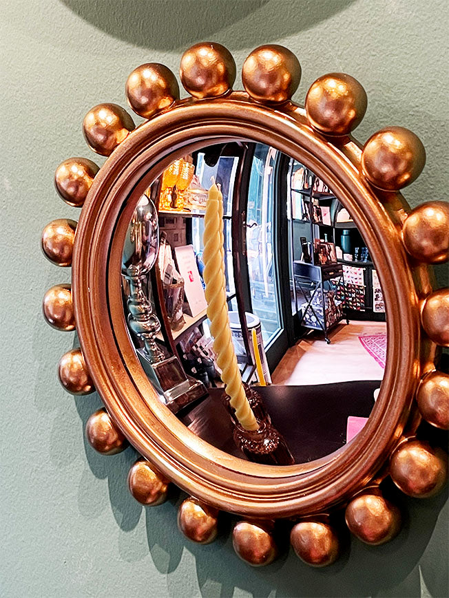 El espejo decorativo 'Boules' con lente de efecto 'ojo de pez', es una pieza elegante que añadirá estilo y calidez a tu decoración, solo o mezclado con otros espejos y obras de arte.