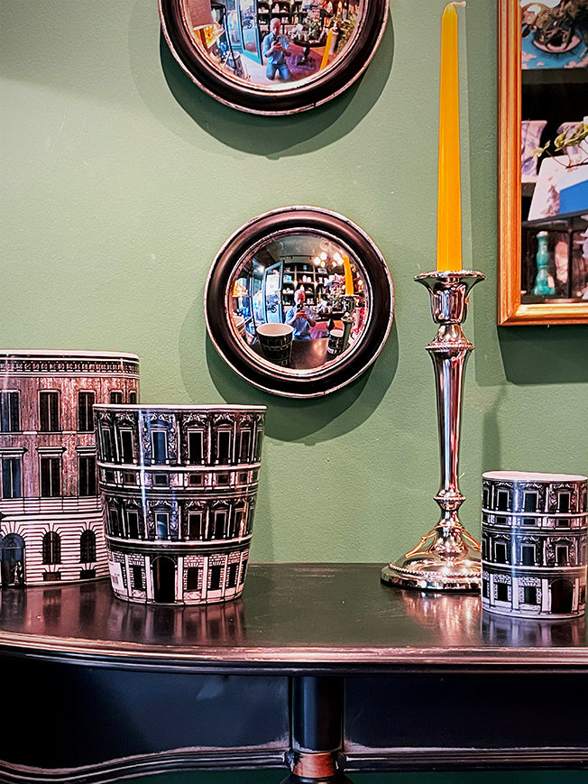 Este espejo decorativo es el mediano de la colección 'Marie' con lente de efecto 'ojo de buey', es una pieza elegante que añadirá estilo y calidez a tu decoración, solo o mezclado con otros espejos y obras de arte.