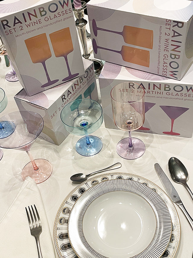 Las copas 'Rainbow' son clásicas con un toque moderno, piezas atemporales que añadirán estilo a tu mesa, combinadas con otras copas de la misma colección o mezcladas con distintas copas y vasos.