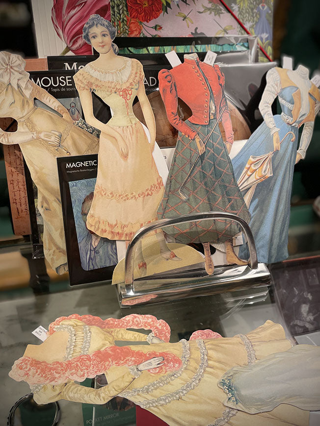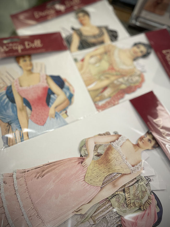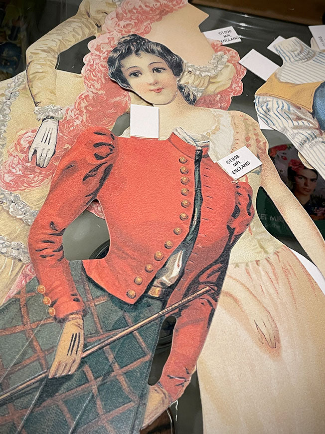 Un kit exquisito de carácter nostálgico y vintage con muñeca y vestidos recortables de estilo inglés. Un diseño original diseñado e impreso en Inglaterra.