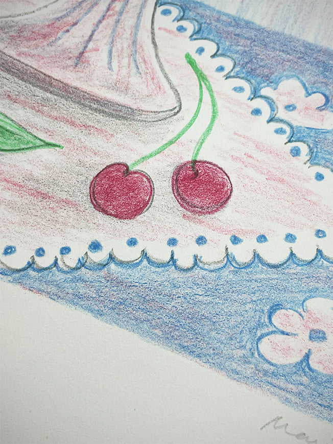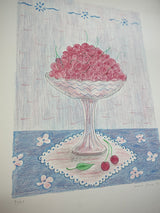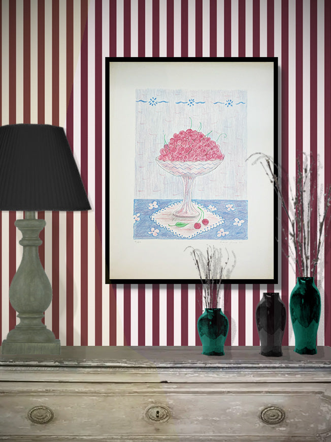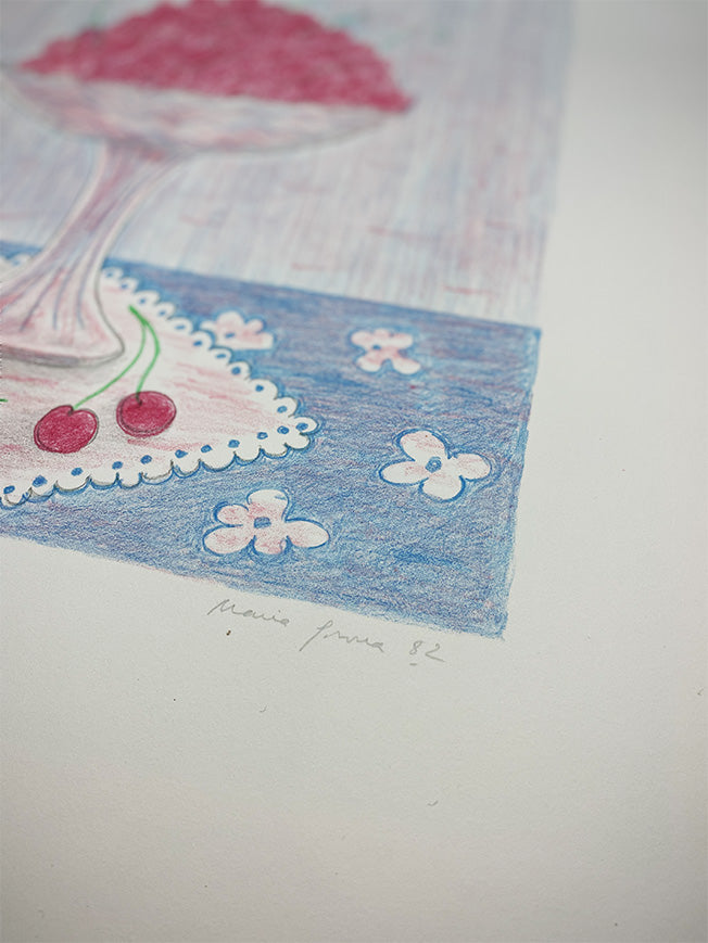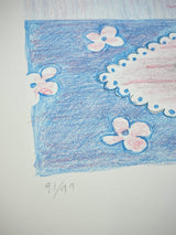 Litografía numerada y firmada de Maria Girona, disponible para la venta sin enmarcar o con marco en madera lacada negro.