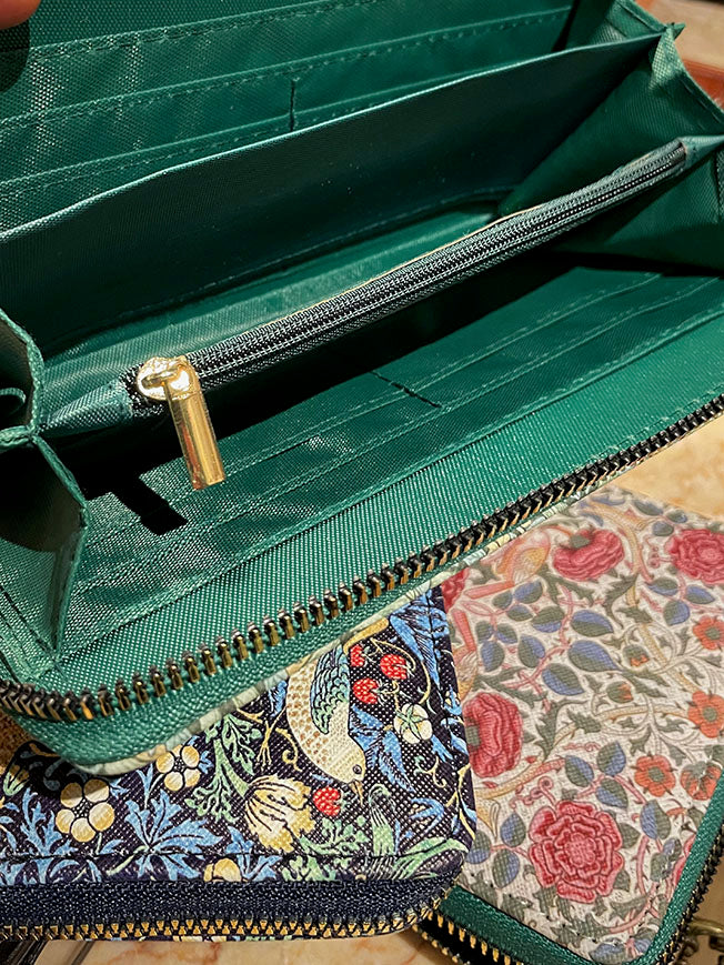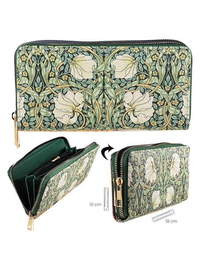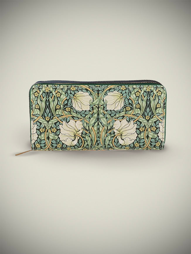Un original monedero grande con el famoso estampado 'Pimpinella' de William Morris, con cierre de cremallera y varios compartimentos.