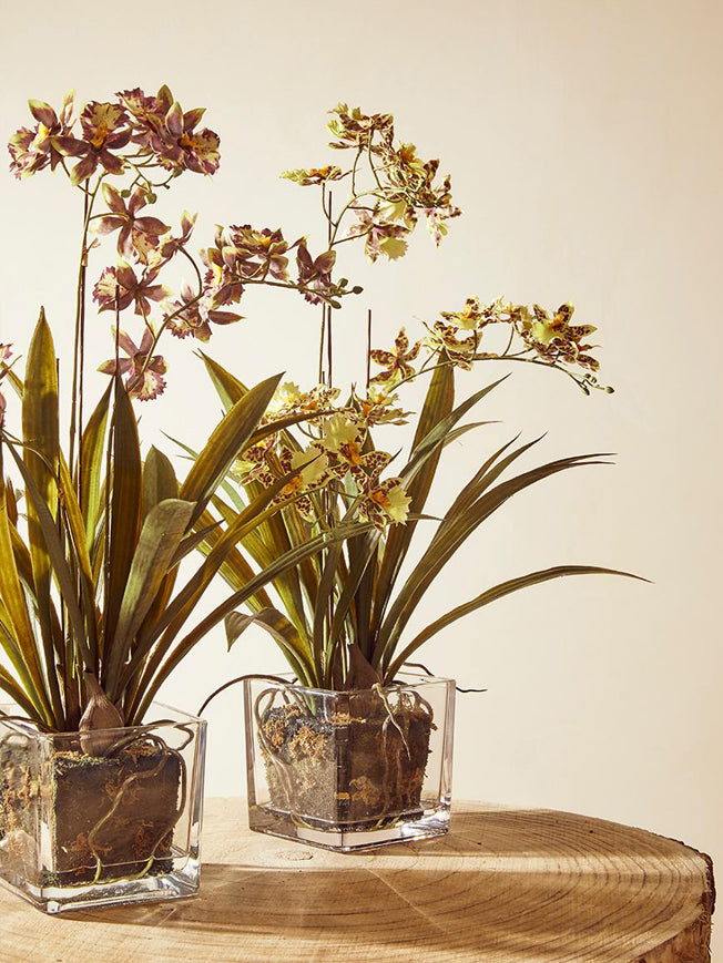 Orquídea en Jarrón de Cristal 'Oncidium' - Amarillo