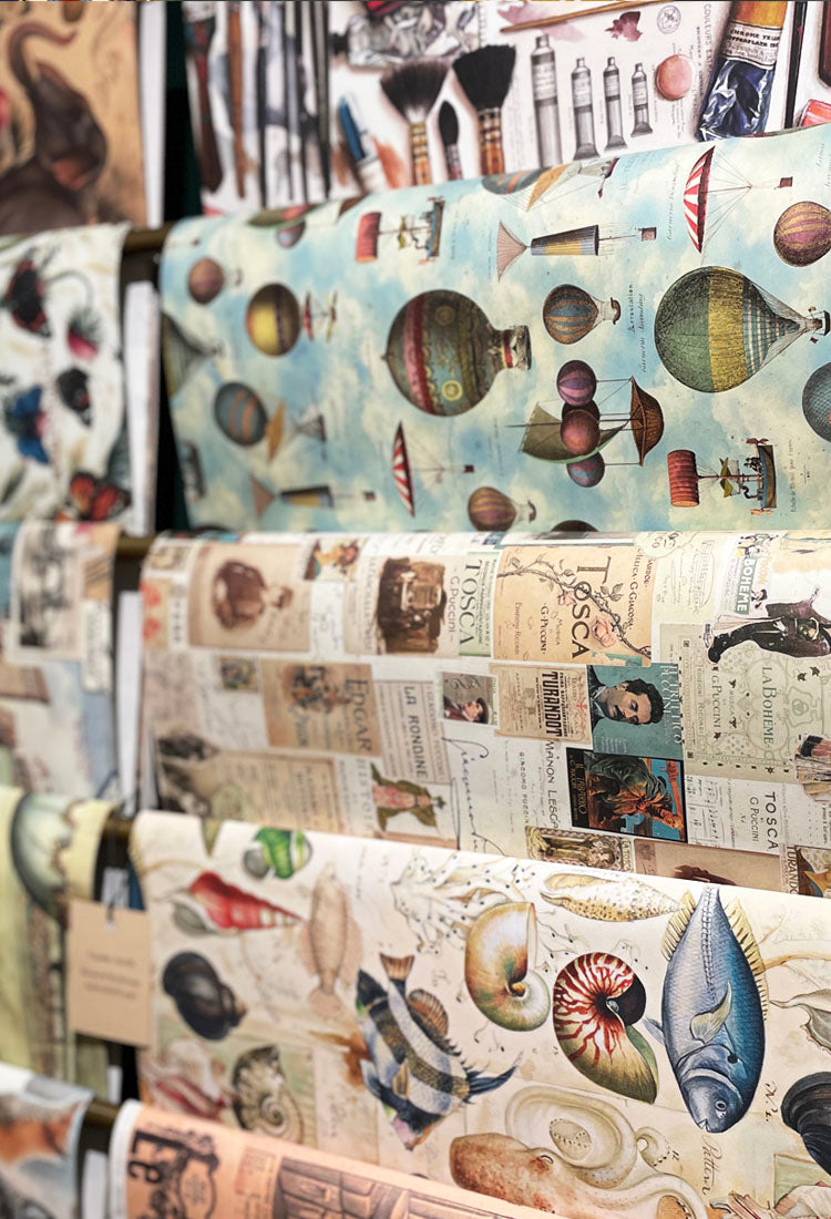 Descubre nuestra selección de papeles estampados en varios diseños, estilos y medidas, papeles originales y diferentes que puedes comprar online y en nuestra tienda de Barcelona.