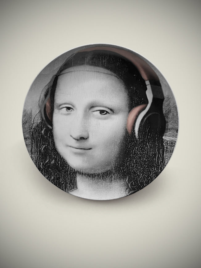 Plato Decorativo 'Mona Lisa con Auriculares' - Grande