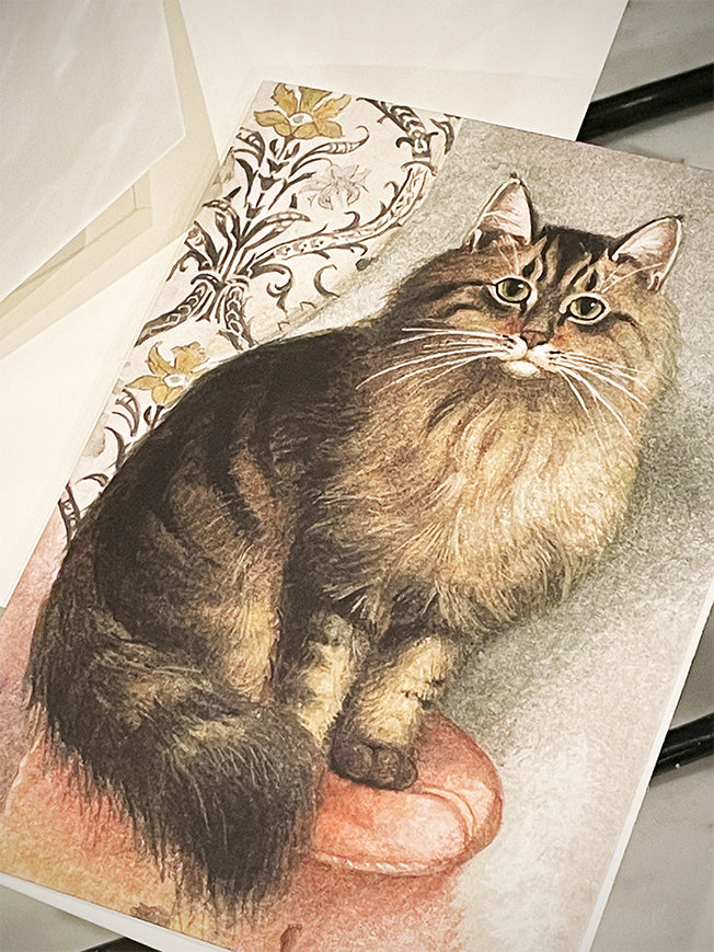 Una tarjeta elegante y original con una ilustración exquisita de un gato Maine Coon, sacada del diseño original The Nine Lives of Cats de la colección BomoArt. Una tarjeta perfecta para enviar tus mejores deseos con estilo o enmarcarla.