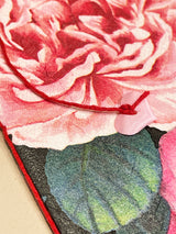 Una tarjeta de felicitación original con un diseño de aire vintage con un estampado patchwork de delicadas y exquisitas peonias. Un diseño trabajado completamente a mano a partir de técnicas de decoupage y collage.
