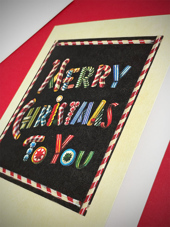 Una tarjeta original con una ilustración gráfica del mensaje 'Merry Christmas to You'.